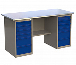 Верстак двухтумбовый 1600 ML0/ML4 поставляется в разобранном виде (4 элемента). Нагрузка на столешницу до 600 кг. Стандартный цвет: корпус - серый глянец RAL 7030, ящики и двери тумб - синий RAL 5017. Размеры: 855x1600x700 мм. Масса: 97 кг.