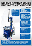 Полуавтоматический. Квадратный стол. Рекомендуется для постов со средней и высокой проходимостью. Для дисков: внешний 11÷21”, внутренний 12÷24”.  Усилие отрыва покрышки 2500 кг. В комплекте: пистолет для подкачки шин + монтажка + пластиковые накладки на зажимные кулачки и головку + регулятор давления с влагоотделителем и манометром. Поставляем на 220В и 380В.