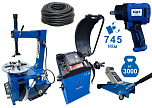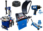 Комплект: шиномонтажный станок TS-21 для дисков: внешний 11÷20” + пистолет с манометром для подкачки шин + монтажка + пластиковые накладки на зажимные кулачки + регулятор давления с влагоотделителем и манометром. + TS-500 балансировочный станок с автозапуском, для колес легковых автомобилей и легких грузовиков, диаметр диска с резиной до 760 мм. размеры диска: ширина 3"–9” (76-228 мм), диаметр диска 10"–21” (254-533 мм). + кожух защитный + клещи + кронциркуль + быстрозажимная гайка + набор конусов + подкатной домкрат г/п 3,0т. 130-465мм. + ударный пневмогайковерт 1/2" крутящий момент 745Нм + шланг кислородный 9мм 20Атм. 10м