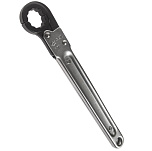 Из хром-молибденовой стали. Хромированная поверхность. Полированная головка. Особая конструкция способствует быстрой работе по обслуживанию гидравлических, пневматических и других систем автомобиля, например, линий высокого давления. Трещоточный механизм удобен для работы с резьбовыми соединениями в условиях ограниченного доступа, ключ нет необходимости снимать. Размер: 17 мм. Длина: 200 мм.