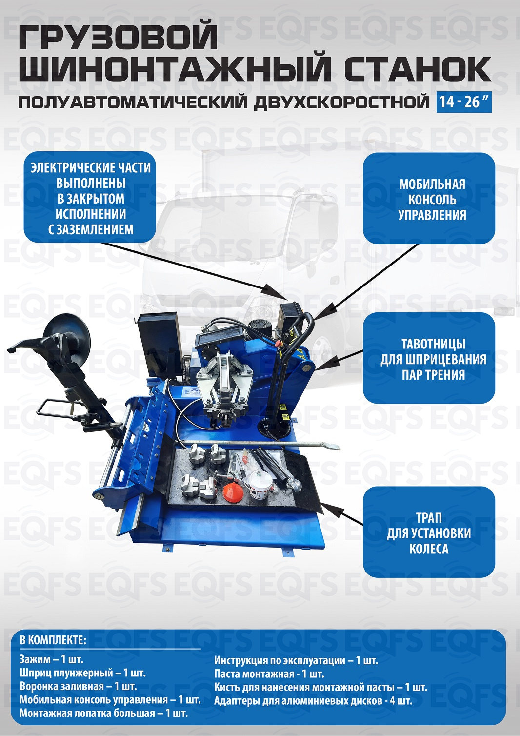 Комплект ES-26 Грузовой шиномонтажный станок + ES-850 Балансировочный станок 380V